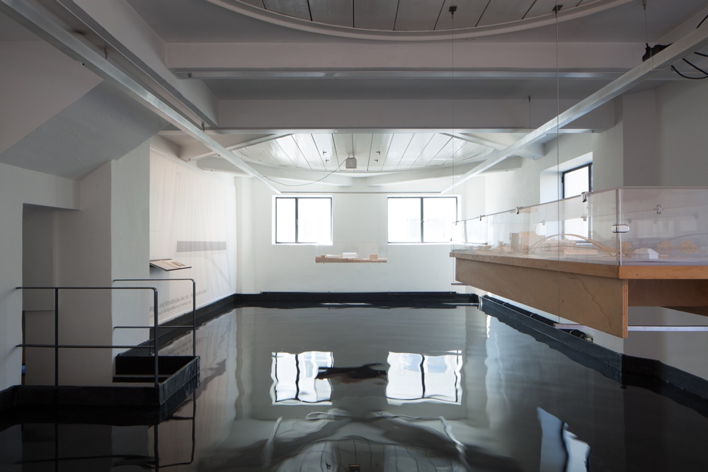 Eröffnung der Ausstellung die mit Modellen, Filmen, Fotografien und Plänen zu 15 Brückenprojekten einen Einblick in Dietmar Feichtingers konstruktives Denken bietet.