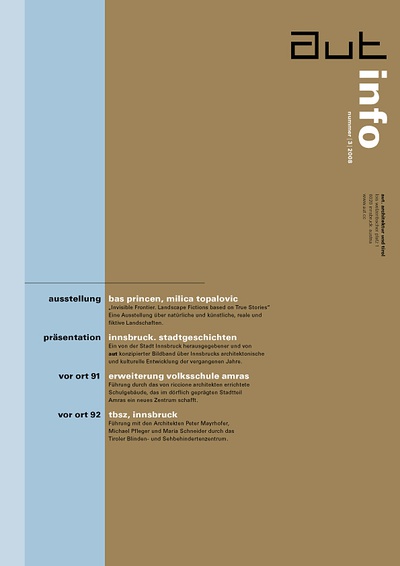Die Ausgabe 3/08 der Programmzeitschrift aut: info mit Hintergrundinformationen zur Ausstellung „Bas Princen, Milica Topalovic: Invisible frontier“ sowie zum Programm des aut zwischen Juni und September 2008.