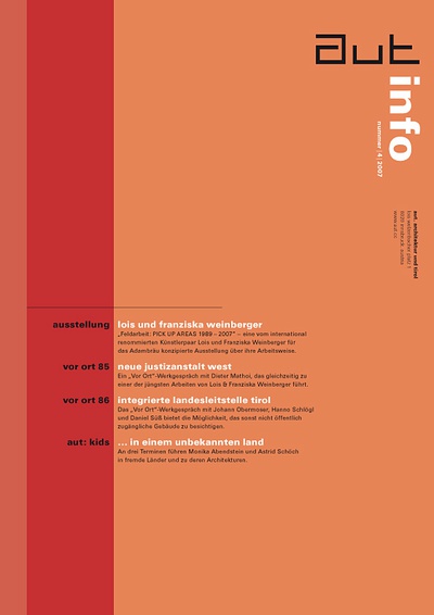 Die Ausgabe 3/07 der Programmzeitschrift aut: info mit Hintergrundinformationen zu den Ausstellungen „Wettbewerb Sternbrauerei Salzburg“ und „genius loci“ sowie zum Programm des aut zwischen Mai und Juni 2007.