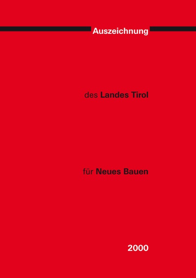 Eine Dokumentation der bei der „Auszeichnung des Landes Tirol für Neues Bauen 2000“ prämierter Bauten. Innsbruck 2000, 16 Seiten, S/W-Abbildungen, 15 x 21 cm; Preis: gratis (Portospesen)