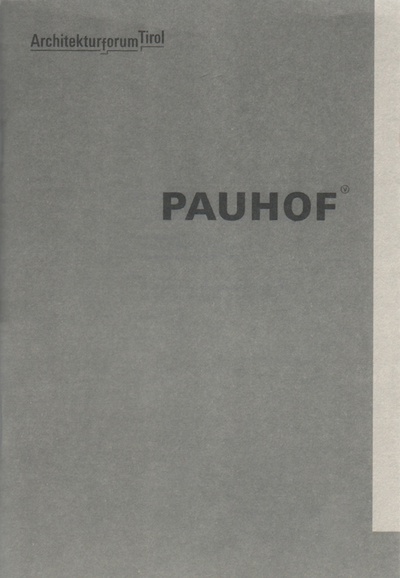 Katalog zur gleichnamigen Ausstellung von PAUHOF (Michael Hofstätter und Wolfgang Pauzenberger) im Architekturforum Tirol von 20. Oktober bis 16. November 1995. (vergriffen)