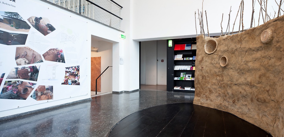 Als Teil der Ausstellung "Diébédo Francis Kéré: Nachhaltige Architektur in Afrika" wurde im aut eine Lehmwand gebaut. Ausstellung im aut bis 4. September