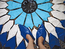 Im aut zeigt Aksamija ihr von der islamischen Ornamentik inspiriertes Projekt „Flocking Mosque“, eine Moschee aus Textil, die die geometrischen Muster islamischer Bauwerke aufnimmt und sie dem Verhalten der Gläubigen gegenüberstellt. Ein Blütenkranz bietet zwölf Gläubigen Raum für ihr Gebet und stellt eine saubere Oberfläche für jene Körperteile zur Verfügung, die dabei den Boden berühren: zwölf Paar Hausschuhe, zwölf Paar Handkissen, zwölf Kopfkissen und in der Mitte ein Beutel mit zwölf Gebetskränzen und einem Kompass. Das geometrische Muster - Ausdruck der Logik und Ordnung, die der islamischen Sichtweise des Universums innewohnen - wird im Gebrauch zur visuellen Analogie der religiösen Verhaltensweisen.