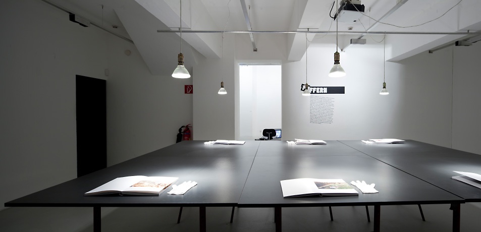 Der Idee des Archivs als konzeptionellem Rahmen folgend selektiert und kategorisiert er diese Aufnahmen nach typologischen und dramaturgischen Kriterien und lenkt so den Blick des Betrachters auf Analogien und Details der Landschaft wie auch auf die Art und Intention der Aufnahmen selbst. In sechs, für die Ausstellung im aut zusammengestellten Fotobüchern zeigt er etwa eine endlose Serie von weiß gestrichenen UN-Beobachtungstürmen oder Luftaufnahmen von Kontrollposten, die willkürlich die Landschaft zerschneiden. Durch die Sortierung und Zusammenstellung wandelt sich das ursprünglich rein dokumentarische Archiv in ein schonungsloses Dokument, das ein gleichzeitig poetisches wie verstörendes Bild dieser letzten Mauer Europas entstehen lässt.
