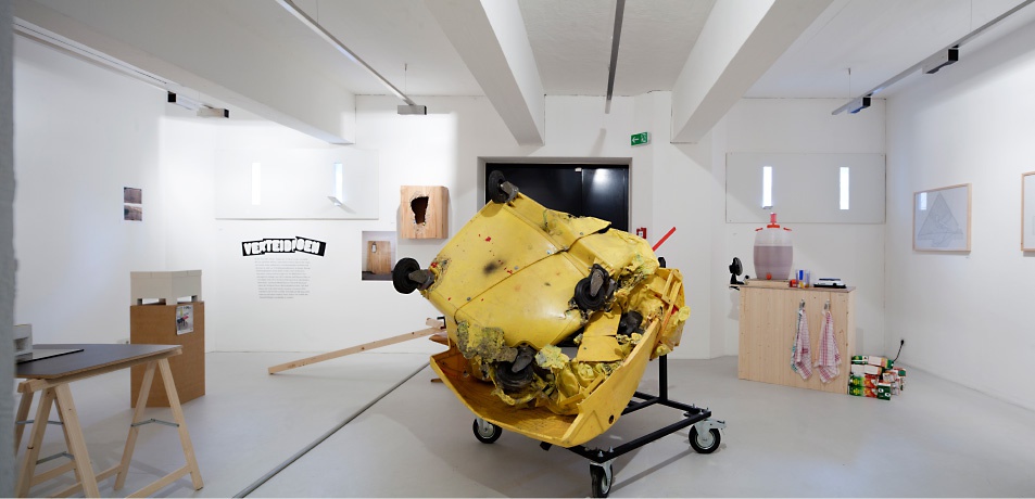 Die Ausstellung „Verteidigung des Normalzustands“ untersucht Symbole des Normalzustands, ihre Etablierung und ihre Funktion in Krisen des Normalen. Besonders in diesen Krisen entsteht das Phänomen einer Betonung des Symbolischen, was zu einer paradoxen Verzerrung führt: Das Festhalten an etwas bereits Hinfälligem. Dadurch können diese Symbole als Tarnung einer ins Wanken geratenen Normalität dienen, oder auch Selbsttäuschung sein, die suggeriert: Alles normal!! Die im Ausstellungsraum gezeigten Gegenstände und Objekte besitzen neben ihrer offensichtlichen Erscheinung eine Doppelbödigkeit, deren Funktionen zwar nicht die Erwartungen der jeweiligen Erscheinung erfüllen, aber dennoch einen Beitrag zur Normalität liefern, oder anders gesagt den Normalzustand mit nicht normalen Mitteln erhalten.