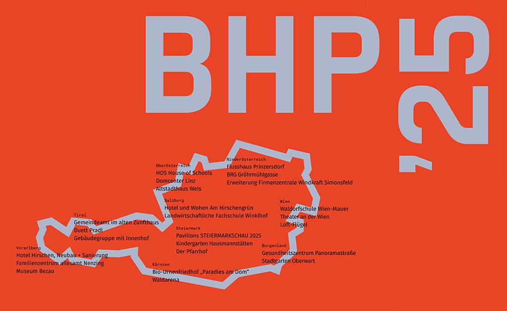 Im November 2025 wurde der diesjährige Bauherr:innenpreis vergeben. Aus den insgesamt 112 Einreichungen wurden 24 Projekte durch die Nominierungsjurien in den Bundesländern ausgewählt. Aus diesen ermittelte die Hauptjury – Anne Beer (Architektin und Städtebauerin, München), Günter Mohr (Architekt, Wien) und Kaye Geipel (Architekturkritiker, Brüssel / Berlin) – sieben Preisträger:innen. Diese, sowie alle nominierten Projekte sind in der Ausstellung „BHP‘25 UNTERWEGS“ zu sehen, die heuer – organisiert vom Landesverband Tirol der ZV – auch im aut Halt macht.