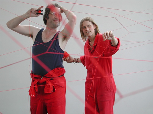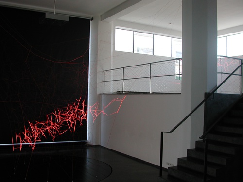 Thomas J. Hauck und Sabina Kaeser verspannen im aut die Galerie mit der „lounge“ und interpretieren mit ihrer Rauminstallation "red respect" die ehemalige Funktion des Adambräus als „Brauereimaschine“ neu.