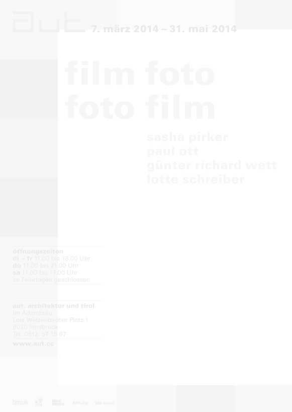 weiterlesen …Textbeitrag von Lotte Schreiber, erschienen im Rahmen der 2014 im aut gezeigten Ausstellung "Film Foto Foto Film. Sasha Pirker, Paul Ott, Günter Richard Wett, Lotte Schreiber". erschienen in aut: info, Nr. 1/2014