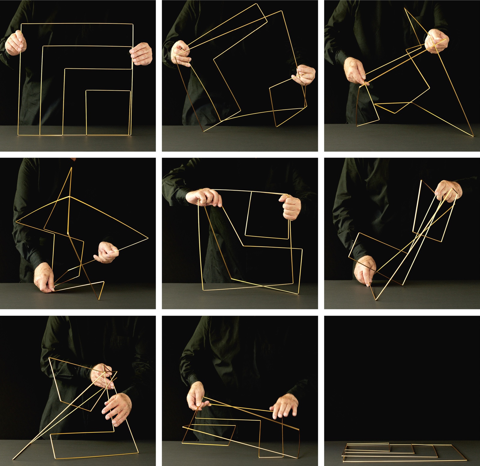 Parallel zu "No Name Design" zeigt Franco Clivio seine "Manifolds" – kinematische Objekte aus geometrischen Linien- und Flächengefügen mit raumgreifendem Ausdehnungspotenzial.