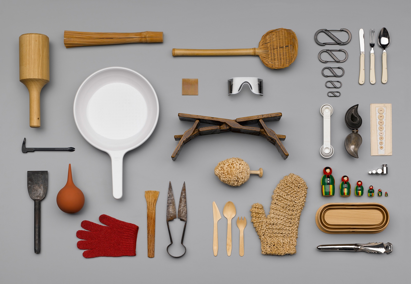 Die Ausstellung „No Name Design“ ist eine Hommage an diese auf den ersten Blick unscheinbaren Gegenstände, die weder blenden noch verführen wollen. Geordnet nach Funktionen, Typologien, Materialien oder formalen Kriterien werden über 1.000 Alltagsobjekte wie Klappmesser, Scheren, Brillen, Bürsten, Greifwerkzeuge oder Messinstrumente präsentiert, die dazu dienen, unser Leben angenehmer zu gestalten.