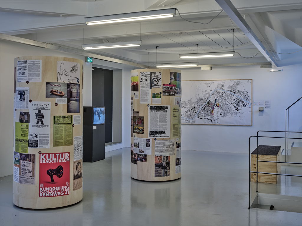 Anlässlich von 50 Jahre DOWAS (Durchgangsort für Wohnungs- und Arbeitssuchende) widmet sich die Ausstellung "geld . macht . raum" den komplexen Problemstellungen einer Ökonomie des Wohnens anhand von Hintergrundinformationen, Fallbeispielen, Videos und künstlerischen Arbeiten.