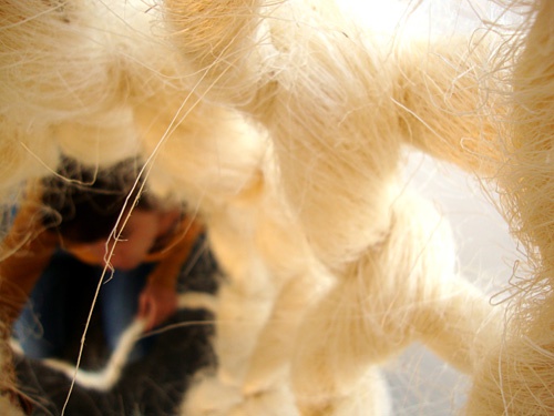 "Penelope" nennen Julia Stefanie Meyer und Simon Oberhammer ihre aus Hanf gewebte, begehbare Rauminstallation, die sie weniger als Objekt denn als ein Skript zum Bau einer textilen Gebäudestruktur verstehen. Analog zur griechischen Mythologie steht der Prozess des Verwebens und Auflösens im Zentrum dieses "work in progress", das zwei Monate lang auf der Galerie im aut verfolgt werden kann.