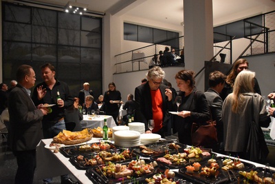 Diese ungezwungenen Abende werden lukullisch von Mitgliedern oder Freunden des aut gestaltet, in diesem Jahr wieder vom bewährten Team Renate Benedikter-Fuchs, Erich Wucherer und Mario Ramoni, die mit dem zur 1970er-Jahr-Ausstellung passenden Buffet „Schinkenröllchen und mehr“ für Gaumenfreuden gesorgt haben..