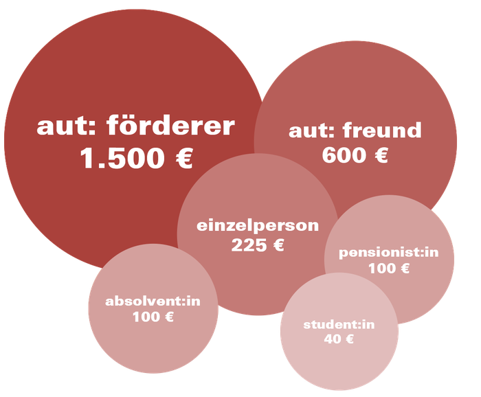 Neben der Möglichkeit, als Einzelperson Vereinsmitglied zu werden, richtet sich die Kategorie aut: freunde insbesondere an größere architekturbüros und die kategorie aut: förderer vor allem an unternehmen oder juridische Personen, die mit ihrem Beitrag die Arbeit des aut unterstützen. Der Mitgliedsbeitrag kann dann auch steuerlich geltend gemacht werden.