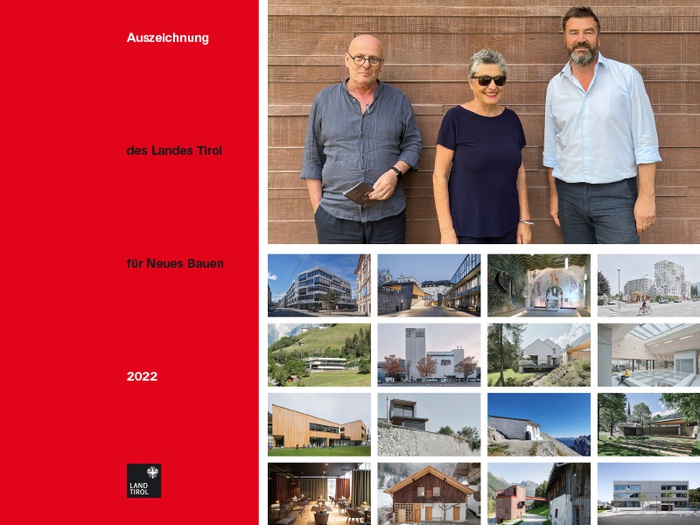 Eine Dokumentation sämtlicher bei der „Auszeichnung des Landes Tirol für Neues Bauen 2022“ prämierter Bauten. Innsbruck 2022, 24 Seiten, zahlreiche Farbabbildungen, 21 x 29,7 cm, gratis (Portospesen)