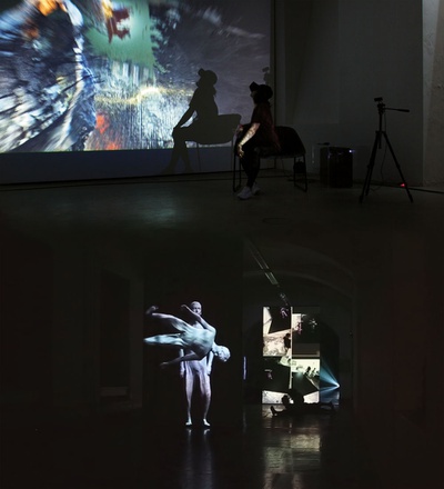 Nach zwei einleitenden Kurzvorträgen zu den in der Ausstellung AND gezeigten Arbeiten INTRA SPACE und "Head in a Cloud" werden Fragen nach den Auswirkungen der thematisierten Verknüpfungen zwischen realen und virtuellen Räumen erörtert.