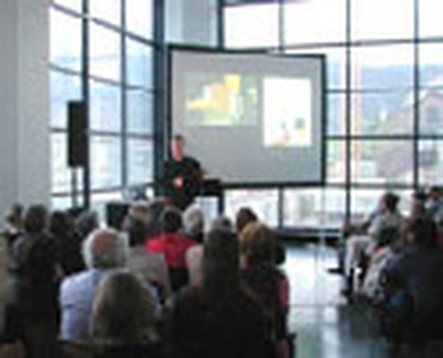 In seinem Vortrag versucht Michael Cede mit zahlreichen – auch live gespielten – Tonbeispielen „architektonisches Interesse“ für Musik zu wecken und eine Sensibilität für die „Welt der Klänge“ zu schaffen.