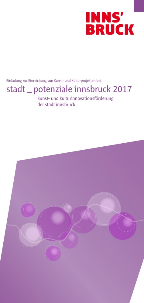 Projekte für stadt_potenziale 2017 können bis 30. November 2016 im Kulturamt der Stadt Innsbruck eingereicht werden. Eine unabhängige Jury wird Anfang Februar 2017 in einer öffentlichen Jurysitzung über die Vergabe und Förderhöhe der Siegerprojekte entscheiden.