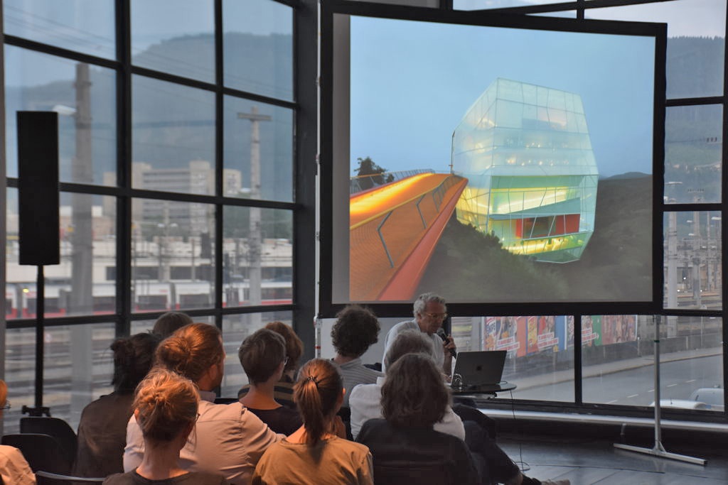 Begleitet wurden die Ausstellungen von rund 40 veranstaltungen, darunter zahlreiche vorträge renommierter Architekt:innen, die inzwischen auf unserer Website nachgesehen werden können, sowie etliche „vor ort“-gespräche bei aktuellen Bauwerken in Tirol und mehrere führungen und stadtspaziergänge. Darüber hinaus haben wir etwa 40 Tiroler Bauwerke auf nextroom.at publiziert und den online-Führer architek[tour] tirol um 30 aktuelle Projekte erweitert.