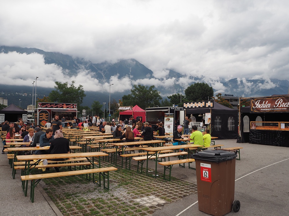 Eine Veranstaltung, die Innsbruck neuerdings regelmäßig heimsucht, nennt sich „European Street Food Festival“. Auf einem abgegrenzten Freiluftareal, das jedenfalls keine Straße ist, versammeln sich verschiedene Exemplare einer amerikanischen Erfindung namens Food-Truck, die als eine Art fahrende Küche Kulinarisches unter die Leute bringt – was an sich keine unsympathische Idee ist, bis sie zum Event ausgebaut wurde. Bei den ersten Ausgaben des Festivals musste man zunächst Eintrittsgeld bezahlen, um sich auf dem Gelände für weiteres Geld verköstigen zu dürfen. Mit der Street-Food-Idee hat auch die lieblose Gestaltung solcher Märkte kaum mehr etwas zu tun, dafür umso mehr mit der Kapitalisierung von Raum. Und die schreitet munter voran, auch weil Freizeitkultur längst gleichbedeutend mit Konsumkultur ist. Man darf es trotzdem gut finden, wenn die Innenstadt in den Sommermonaten zu einem riesigen Gastgarten wird. Zumal sich Innsbruck lange genug eher schwer damit getan hat, eine urbane Freiluftkultur zu entwickeln.