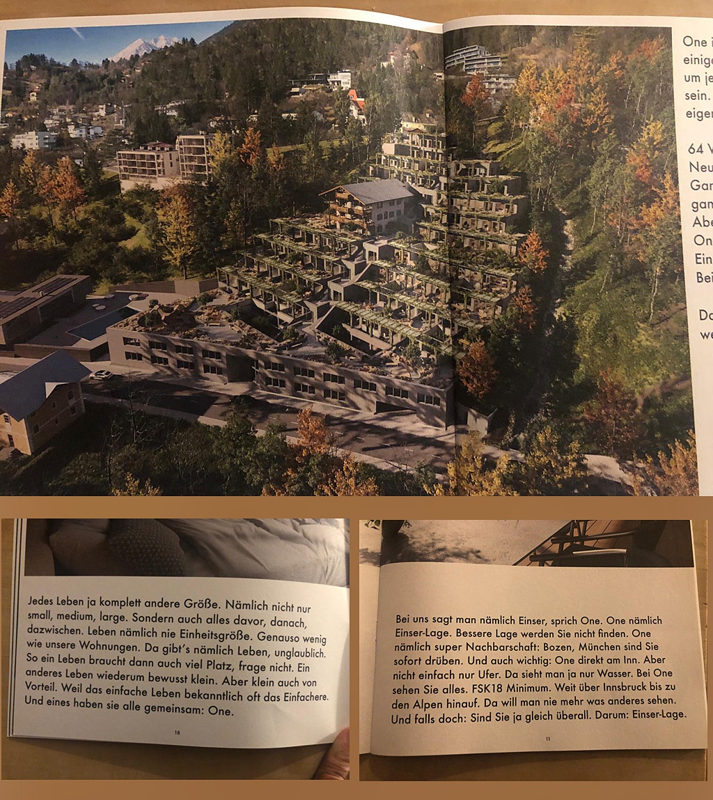 Wenn das neue Eigenheim dort liegt, „wo das Leben fließt, aber nie davon läuft“ (sic!), könnte das Fluchtreflexe hervorrufen, doch es gibt kein Entrinnen, das PR-Geschwurbel vernebelt auch anderswo die Sinne: „Bei uns sagt man nämlich Einser, sprich One. One nämlich Einser-Lage. Bessere Lage werden Sie nicht finden. One nämlich super Nachbarschaft: Bozen, München sind Sie sofort drüben.“ Ob hier eine wild gewordene ki oder ein verkappter Dichter mit Wolf-Haas-Komplex am Werk war, ist unbekannt, beworben wurde mit diesen Zeilen jedenfalls das umstrittene Bauprojekt in der Innstraße 115 in St. Nikolaus, zu dem es weiter heißt: „Jedes Leben ja komplett andere Größe. Nämlich nicht nur small, medium, large. Sondern auch alles davor, danach, dazwischen. Leben nämlich nie Einheitsgröße. Genauso wenig wie unsere Wohnungen. Da gibt’s nämlich Leben, unglaublich. So ein Leben braucht dann auch viel Platz, frage nicht. Ein anderes Leben wiederum bewusst klein. Aber klein auch von Vorteil. Weil das einfache Leben bekanntlich oft das Einfachere.“ In diesem Sinne: Keep it simple! Wenn Sie können, beim Quality Living in Ihrem Hilltop Hideaway.