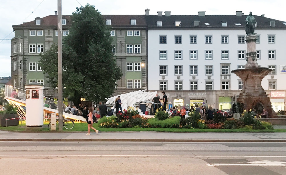 In Innsbruck wird seit Jahren, ausgehend vom ./studio3, columbosnext, aut. architektur und tirol, tortenwerkstatt, krater fajan, Hannes Baumann u.a. versucht, einerseits mit architektonischen Interventionen im Stadtraum, andererseits durch das Besetzen von Leerständen, Freiräume zu schaffen. Die Verbindung zwischen Gestalt und Raum wird dabei oft zum Thema gemacht und durch die performative Inbesitznahme ein Ort zur Keimzelle von städtischem Leben. Die baulichen Interventionen im öffentlichen Raum zeugen von architektonischer Autonomie und sollen so zum essentiellen Wissens- und dadurch Bewusstseinstransfer führen. Durch die Platzierung im urbanen Kontext will kollektive Verantwortung aktiviert und Architektur als starkes demokratisches Medium etabliert werden. Die architektonische Autonomie dieser Implantate lässt Nischen und Zwischenräume entstehen. In einer zukunftsfähigen Stadt reichen diese minimalen Interventionen jedoch nicht mehr aus, sie können als Studien für größere Überlegungen und Strategien gesehen werden, um den Freiraum der Stadt zu sichern. Entgegen der „Überfunktionalisierung“ steht die Sehnsucht nach neuen Räumen, die nicht dem Diktat einer marktgesteuerten Logik folgen.