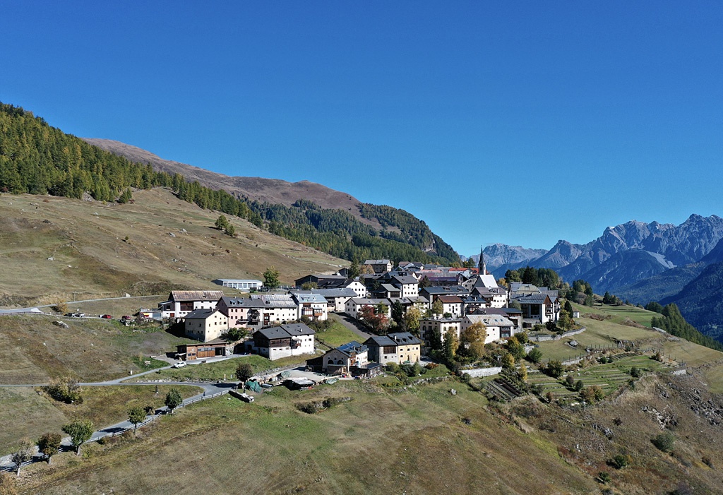 Die großen, eher „groben“ hölzernen Wirtschaftsräume richten sich nach außen hin zur Landschaft und die „feinen“ Wohnräume in den verputzen und mit Sgrafitti geschmückten Körpern schauen in den öffentlichen Raum des Dorfes. Es entstanden helle, „sonnigere“ Häuser an der Nordseite des Dorfkerns und dunkle, „schattigere“ an dessen Südseite. Wir finden Häuser, die parallel oder senkrecht zum Hang stehen, finden verschiedene Haustypen – wie Herbergen und Bauernhäuser, in eher groben oder auch feinen Variationen.