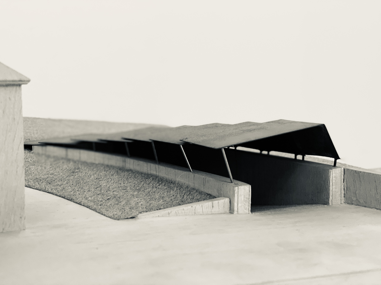 rainer köberl: überdachung einer tiefgaragenabfahrt bei schloss gandegg in überetsch