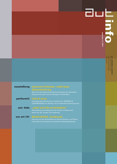 Die Ausgabe 2/11 der Programmzeitschrift aut: info mit Hintergrundinformationen zur Ausstellung "Amol eppas ondorsch" und zum Programm des aut zwischen April und Juni 2011.