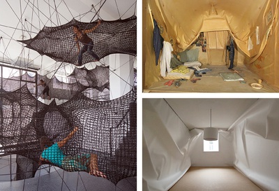 Presseunterlagen zu der von November 2023 bis Feber 2024 im aut gezeigten Ausstellung mit zwei pneumatischen Installationen von Numen / For Use, bei denen vertraute, gewöhnliche Räume ins Irrationale kippen..