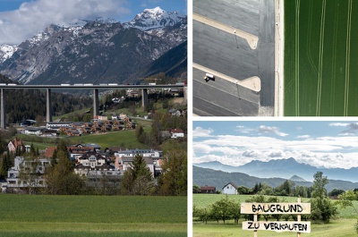 Presseunterlagen zu der von Juli bis Oktober 2022 im aut gezeigten Ausstellung des Az W Architekturzentrum Wien über den sorglosen und kapitalgetriebenen Umgang mit der kostbaren Ressource Boden.