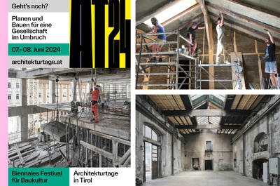 Presseunterlagen zum Programm der Architekturtage 2024 in Tirol, die sich unter dem Motto "Geht‘s noch" dem Planen und Bauen für eine Gesellschaft im Umbruch widmen.