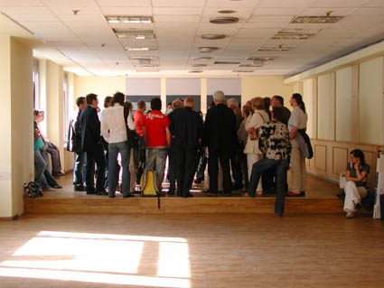 Architekturtage 2006, Tag 1: Die Innenstadt im Wandel – Präsentation der neuen Zentrale der Hypo Tirol Bank und der Erweiterung Landhaus 1 durch Schlögl & Süss Architekten im ehemaligen Cafe Schindler im Hotel Maria Theresia.