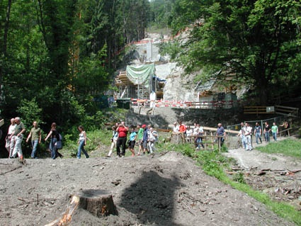Architekturtage 2006, Tag 2: Baustelle Innsbrucker Nordkettenbahnen Neu – Ein geführter Spaziergang vom Alpenzoo bis zum Congress bot die Möglichkeit, sich vor Ort ein Bild über die Trassenführung und Baustellen der Stationen von Zaha Hadid für die „Innsbrucker Nordkettenbahnen neu“ zu machen.