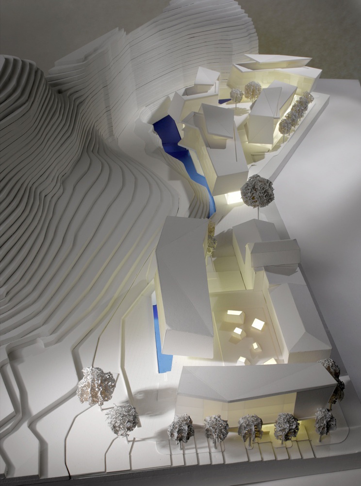 "Konzeptuell reproduziert das Projekt die Felsformationen, Ablagerungen und zufälligen Anordnungen eines Steinbruchs mit seinen aus dem Berg geschlagenen, zerkleinerten und wie zufällig aufgetürmten Felsbrocken. Jeder Block wird zu einem Container, der in seinem Inneren kleinere Blöcke oder Wohnungen umschließt. Dieser Ansatz begreift den Berg mehr als ,Generator’ denn als Kulisse." (Hariri & Hariri)