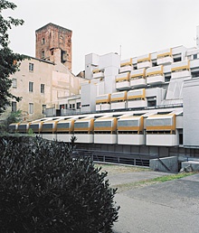 Im Gegensatz dazu wurde die Bautätigkeit in Ivrea, der „Stadt der Schreibmaschinen“, immer wieder ausführlich publiziert. Die von unterschiedlichen Architekten für Adriano Olivetti entwickel-ten Projekte spannen einen weiten Bogen von der maschinenhaften Architektur des Hotels La Serra (Iginio Cappai, Pietro Mainardis, 1967 – 75) über die radikale Position eines eingegrabenen Appartementhauses (Roberto Gabetti, Aimaro Isola, 1969 – 74) bis hin zu einem Kindergarten (Mario Ridolfi, Wolfgang Frankl, 1955 – 59), der Elemente des traditionellen Bauens aufnimmt.