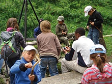 Die Alpe am Fuß der Mohnenfluh ist eines der ältesten Besiedlungsgebiete der Walser. Vier Tage lang können hier Kinder gemeinsam mit Armin Kathan das reduzierte Leben in der Jurte mit Brotbacken am offenen Feuer, Fliegenfischen, Aufspüren des geeigneten Platzes für das NaturabOrt und dessen Errichten erleben.