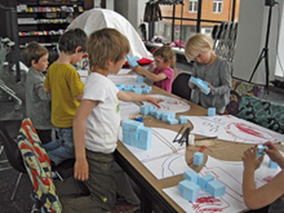 Eine spielerische Annäherung an Themen der Architektur über Geschichten, räumliche Experimente und das Bauen von Modellen.