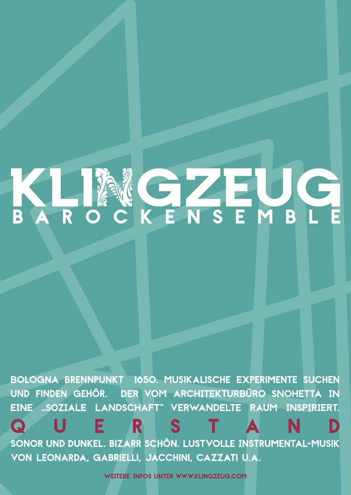 Das Barockensemble "klingzeug" begibt sich in diesem Konzert zusammen mit seinen Zuhörern in den von Snøhetta gestalteten zentralen Ausstellungsraum des aut, der in eine “soziale Landschaft” transformiert wurde und eine ungewöhnliche Raumwahrnehmung evoziert – für Zuhörer und Musiker.