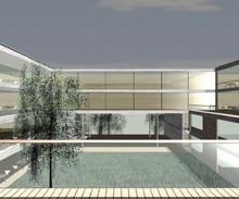 Regina Noldin und Rainer Noldin stellen ihr Projekt eines Alten- und Pflegeheims mit 126 Betten für die Innsbrucker Stadtbau GmbH vor. Der fünfgeschoßige Neubau entlang der Ostgrenze der neuen Bebauung folgt in seiner Grunddisposition den Vorgaben des Leitprojekts und reagiert auf den städtischen Platz im Süden und die Parkanlage im Osten.