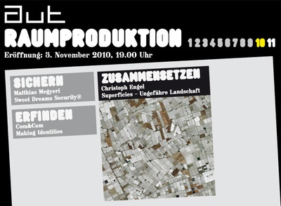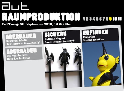 Mit den Ausstellungen "Matthias Megyeri: Sweet Dreams Security® — Layout" und "Com&Com: Making Identities" setzt sich die über das ganze Jahr 2010 gezeigte, von Matthias Böttger (raumtaktik) kuratierte Ausstellungsreihe aut.raumproduktion fort.