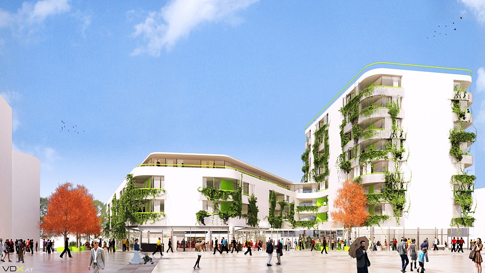 Immer mehr Menschen leben in Städten, immer mehr suchen Sinn und Nachhaltigkeit in ihrem Leben. Das von sandbichler architekten entworfene Quartiershaus „Grüner Markt“ am Wiener Hauptbahnhof versucht eine architektonische Antwort auf diese Entwicklung anzubieten. In dem aus einem Bewerbungsverfahren hervorgegangen Projekt soll ab 2018 unter dem gemeinsamen Nenner „Teilen und Kooperieren“ gewohnt, gearbeitet und produziert werden.
