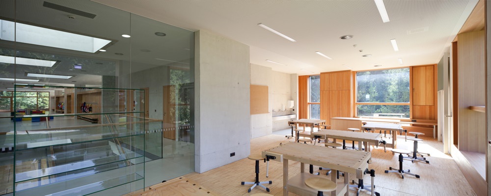 Im Rahmen des „Vor Ort“-Werkgesprächs bietet sich die Möglichkeit, gemeinsam mit dem Architekten den Schulneubau mit der als „Arena“ konzipierten Turn- und Festhalle zu besichtigen.