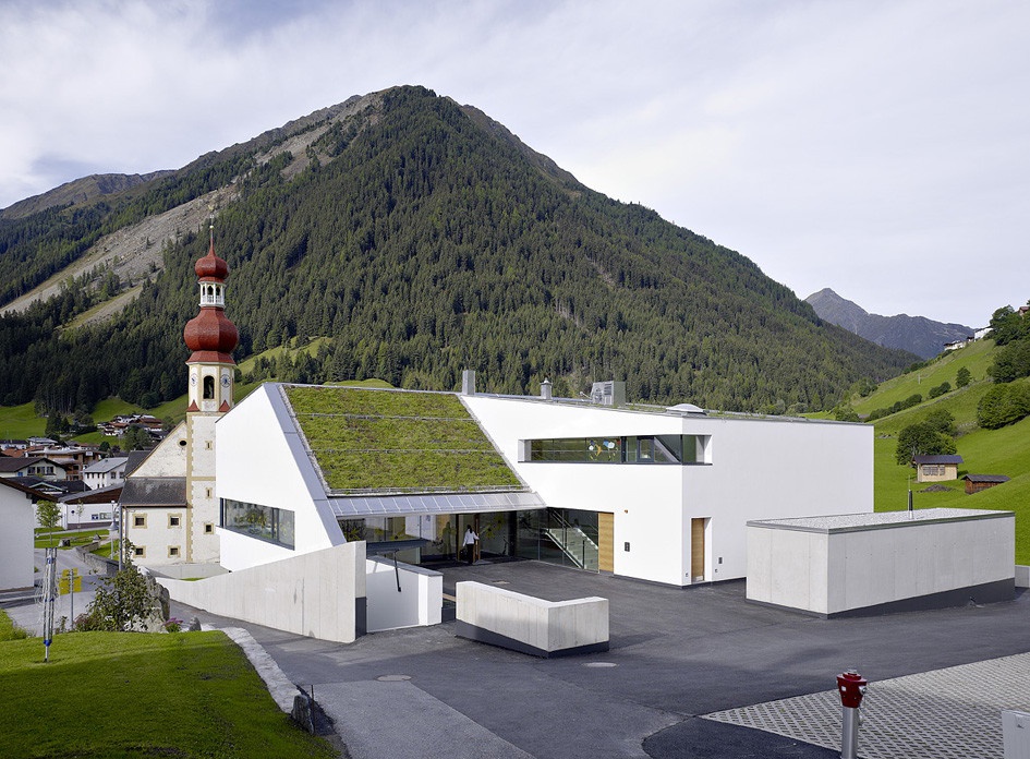 Am Dorfrand von Gries im Sellrain, oberhalb der Kirche gelegen, ersetzt das neue Schul- und Kindergartengebäude einen nicht mehr wirtschaftlich zu adaptierenden Bestand aus den 1950er Jahren. Das aus einem von der Dorferneuerung abgewickelten, geladenen Architekturwettbewerb hervorgegangene Projekt der Arbeitsgemeinschaft Michael Lukasser und Schlögl & Süß Architekten reagiert auf die umfangreichen Raumvorgaben der Nutzer und das begrenzte Grundstück mit einem kompakten Baukörper, der sich typologisch an den umliegenden Häusern orientiert und durch seine Gliederung in die bestehende kleinteilige Struktur einfügt.