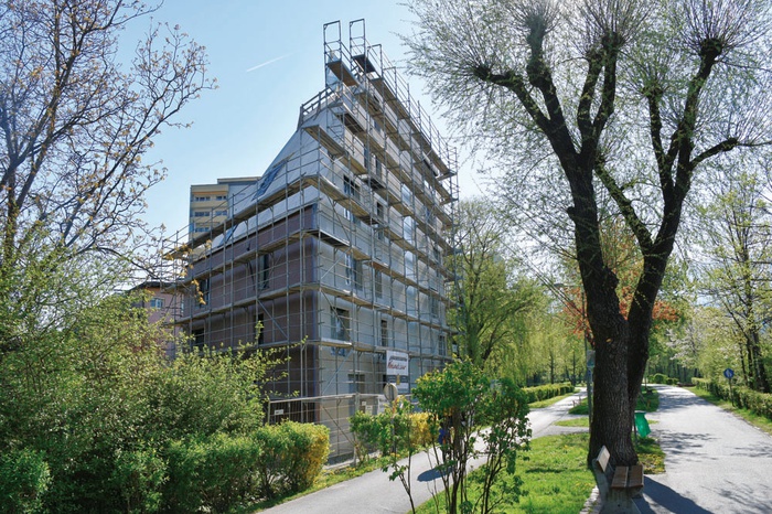 Für ein sehr kleines Grundstück zwischen Innpromenade und dem dicht bebauten Siedlungsgebiet des Olympischen Dorfes wurde lange nach einer kommunalen Nutzung gesucht. Schließlich wurde sie mit einem Haus für psychosoziale Begleitung und Wohnen gefunden. Das von der Innsbrucker Immobilien GmbH errichtete und von Fügenschuh Hrdlovics Architekten geplante Gebäude wird demnächst Menschen mit chronisch psychischen Erkrankungen ein Zuhause auf Zeit geben.