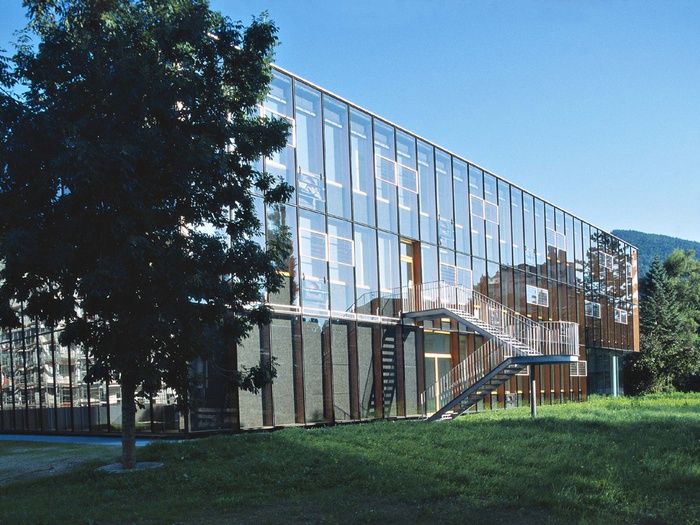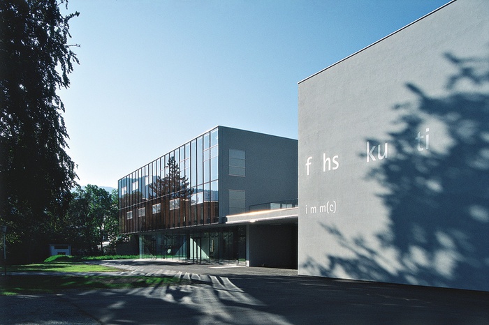 Mit der Übersiedelung der Fachhochschule vom Stadtrand ins Zentrum von Kufstein wurde ein erster Impuls für die innerstädtische Entwicklung gesetzt. Von Henke und Schreieck als „Möbel im Park“ konzipiert, entstand ein kubischer Baukörper mit einer gläsernen Außenhaut, die von Holzlamellen strukturiert wird. Die energetisch innovative zweischalige Klimafassade mit integrierter Raumlüftung macht das Gebäude zugleich zum Anschauungsbeispiel für die hier studierenden künftigen „Facility Manager“.